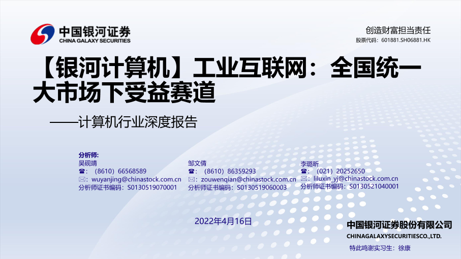 【银河证券】【20220416】计算机行业深度报告:工业互联网_全国统一大市场下受益赛道-35页