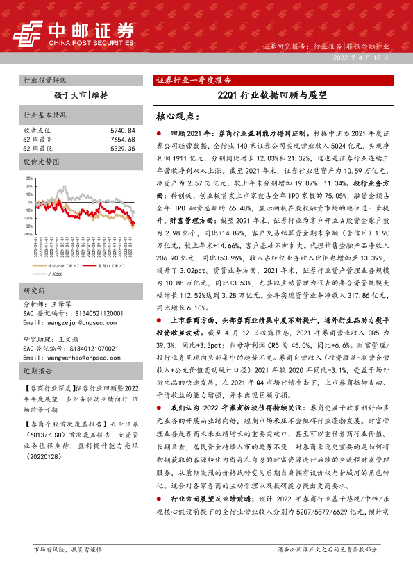 【中邮证券】【20220418】证券行业一季度报告:22Q1行业数据回顾与展望-22页