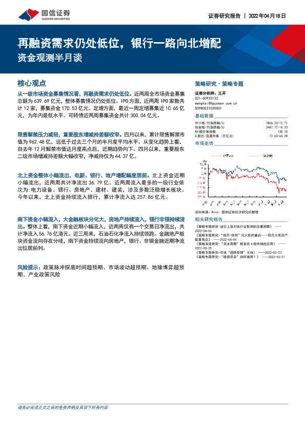 【国信证券】【20220418】资金观测半月谈:再融资需求仍处低位,银行一路向北增配-17页