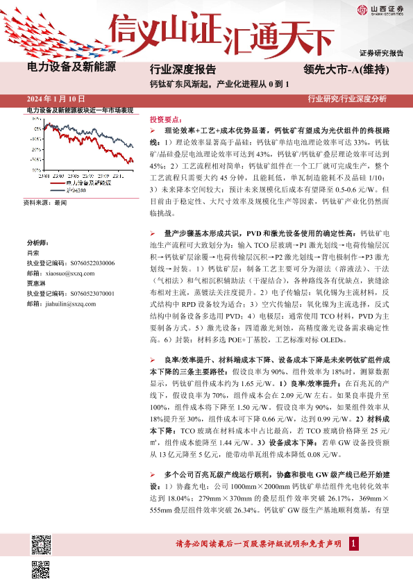 【山西证券】【20240111】电力设备及新能源行业深度报告-钙钛矿东风渐起-产业化进程从0到1-48页