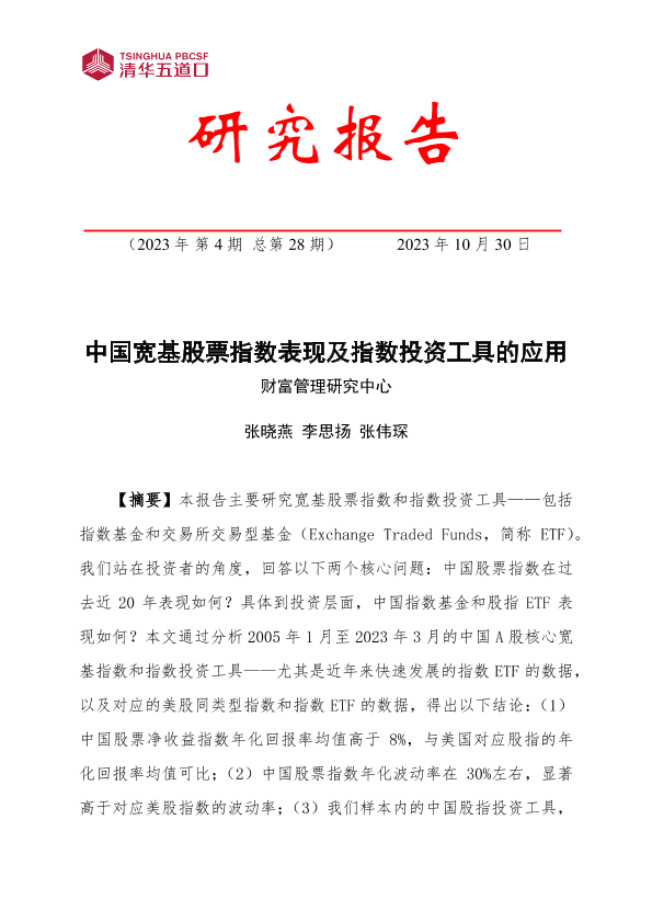 【清华五道口】【20231030】2024-01-18-2023中国宽基股票指数表现及指数投资工具的应用研究报告-36页