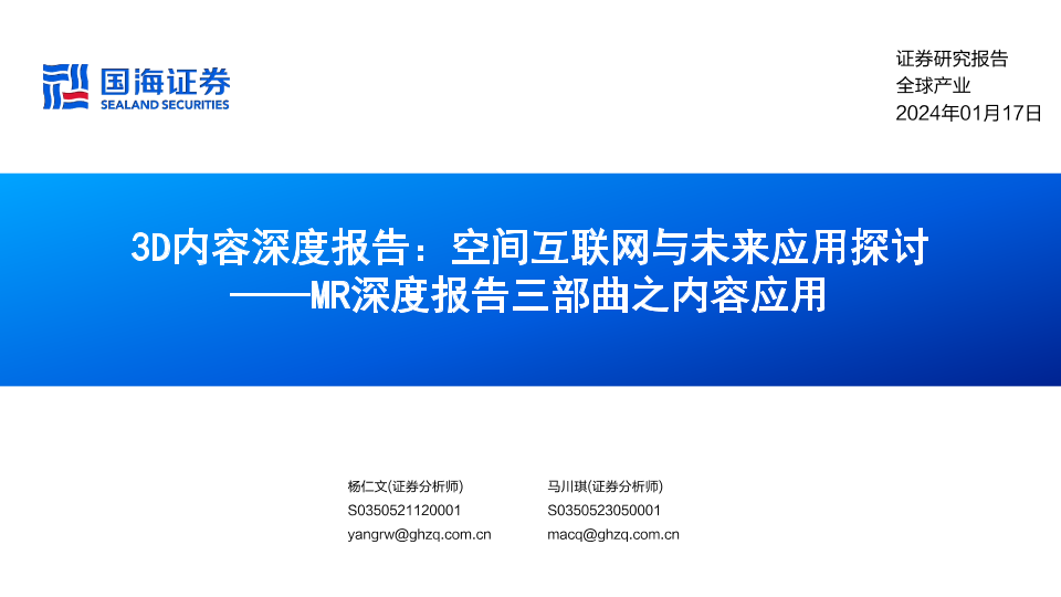 【国海证券】【20240117】3D内容深度报告:空间互联网与未来应用探讨-51页