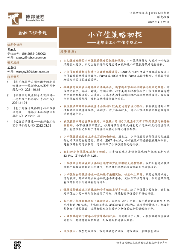 【德邦证券】【20220420】金工小市值专题之一:小市值策略初探-24页