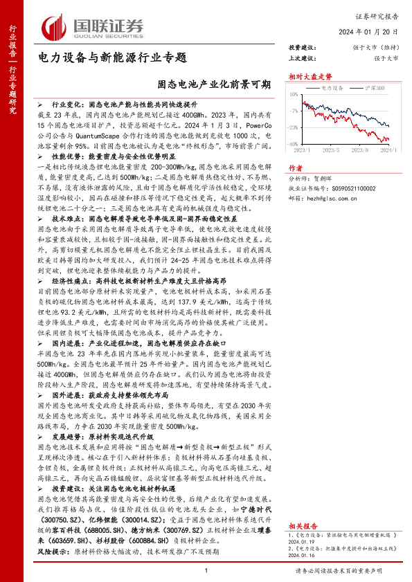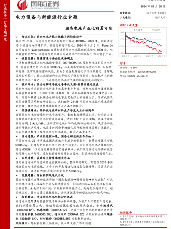 【国联证券】【20240120】电力设备与新能源行业专题-固态电池产业化前景可期-16页