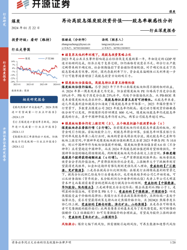【开源证券】【20240123】2024-01-23-煤炭行业深度报告-再论高股息煤炭股投资价值-股息率敏感性分析-20页