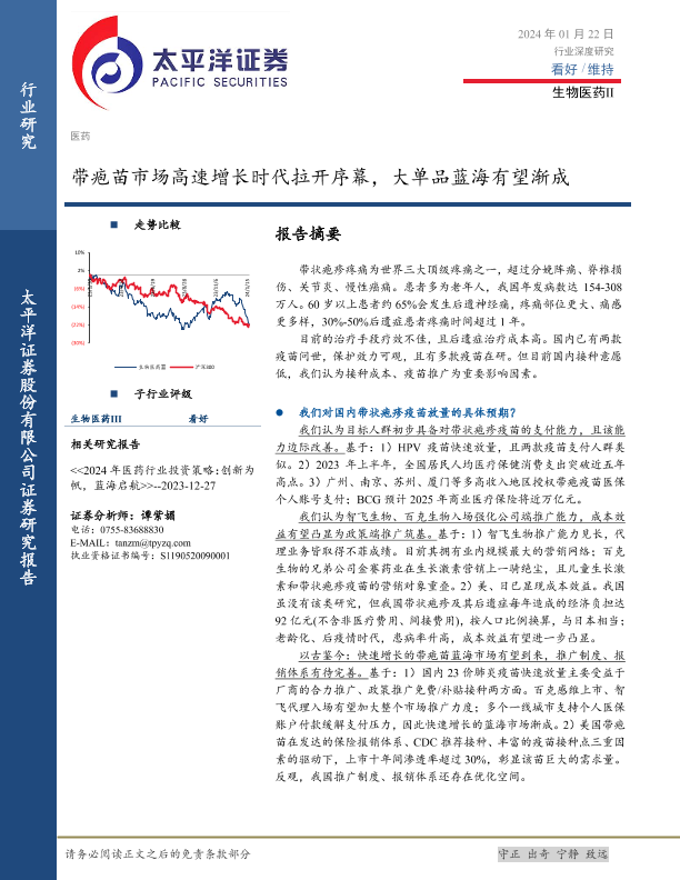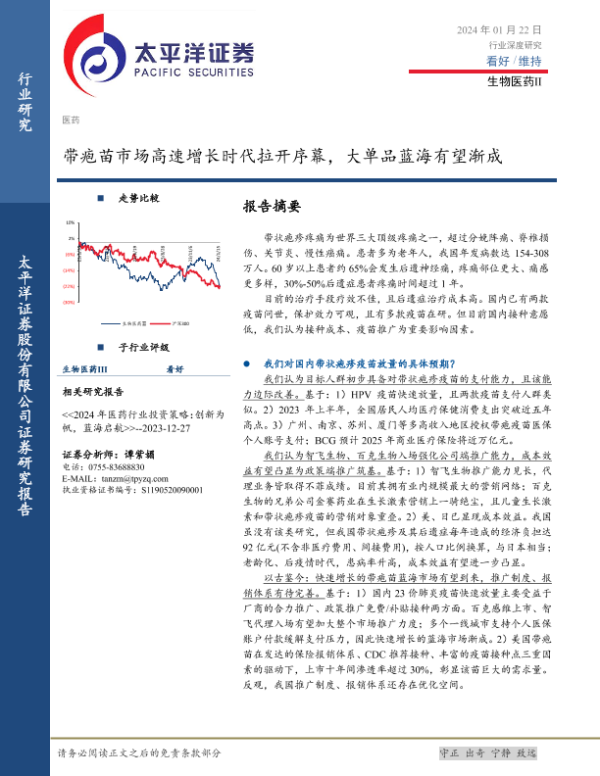 【太平洋证券】【20240122】2024-01-24-生物医药Ⅱ行业深度研究-带疱苗市场高速增长时代拉开序幕-大单品蓝海有望渐成-30页