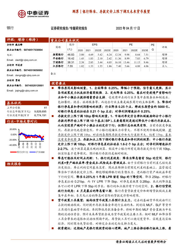 【中泰证券】【20220417】银行业:测算|银行降准、存款定价上限下调及未来货币展望-21页