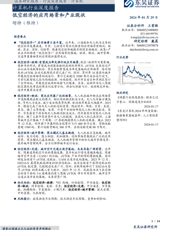 【东吴证券】【20240129】计算机行业深度报告-低空经济的应用场景和产业现状-14页