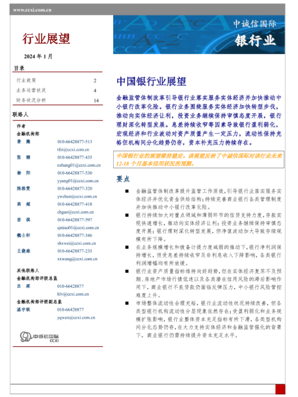 【中诚信国际】【20240130】中国银行业展望-26页