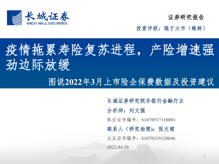 【长城证券】【20220420】非银行金融行业图说2022年3月上市险企保费数据及投资建议-25页