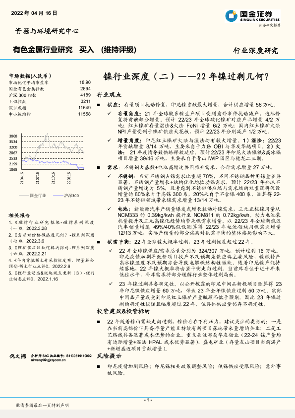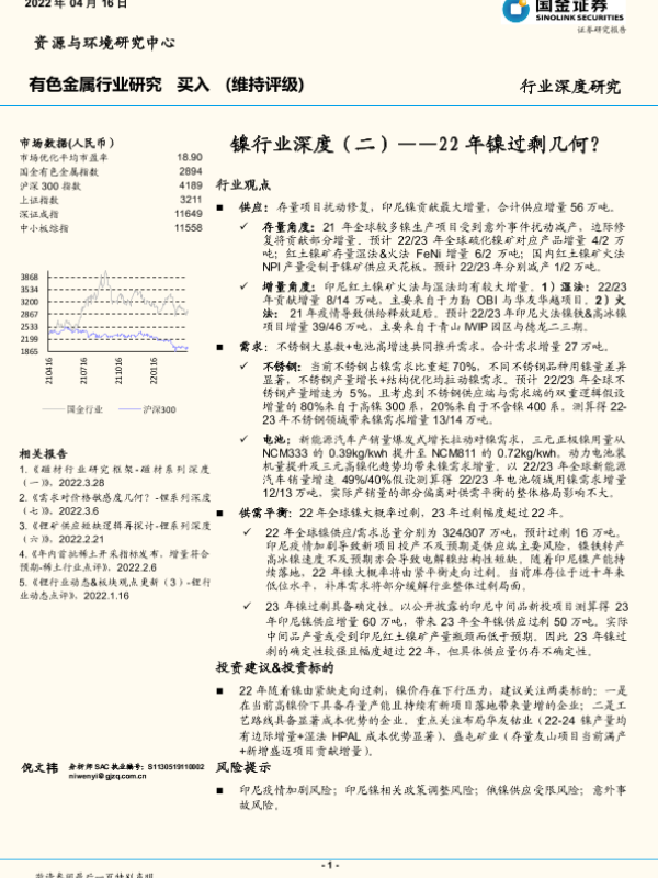 【国金证券】【20220416】镍行业深度(二):22年镍过剩几何?-20页