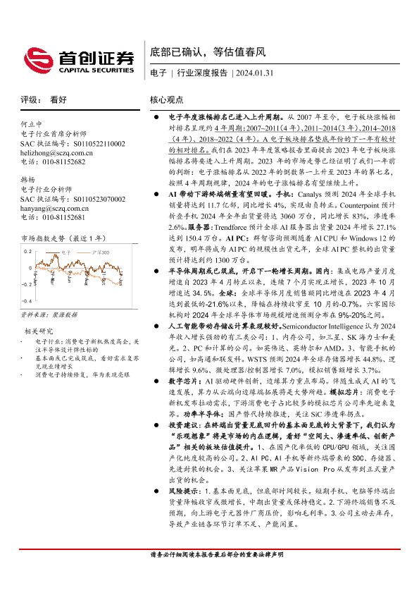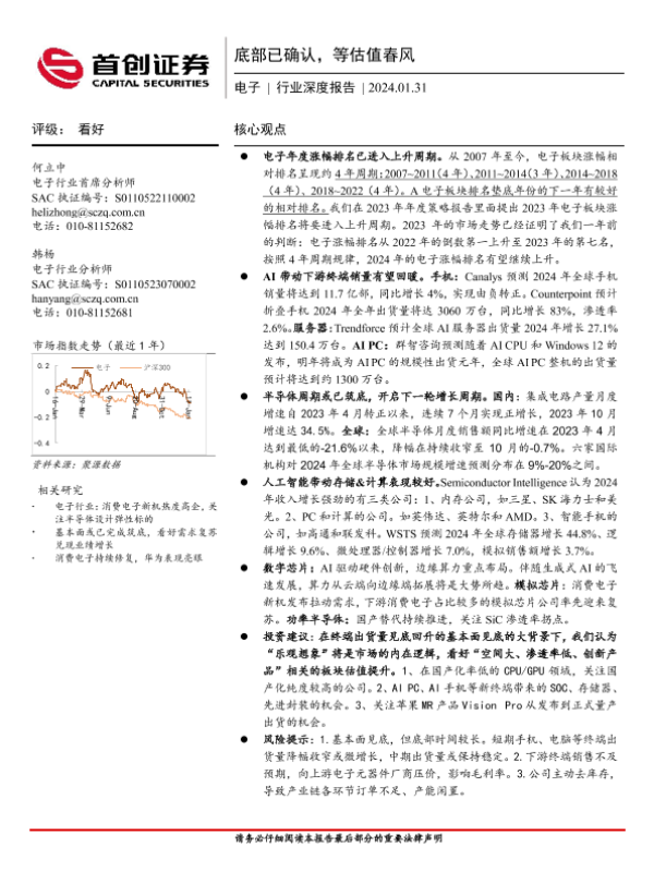 【首创证券】【20240131】2024-02-01-电子行业深度报告-底部已确认-等估值春风-42页