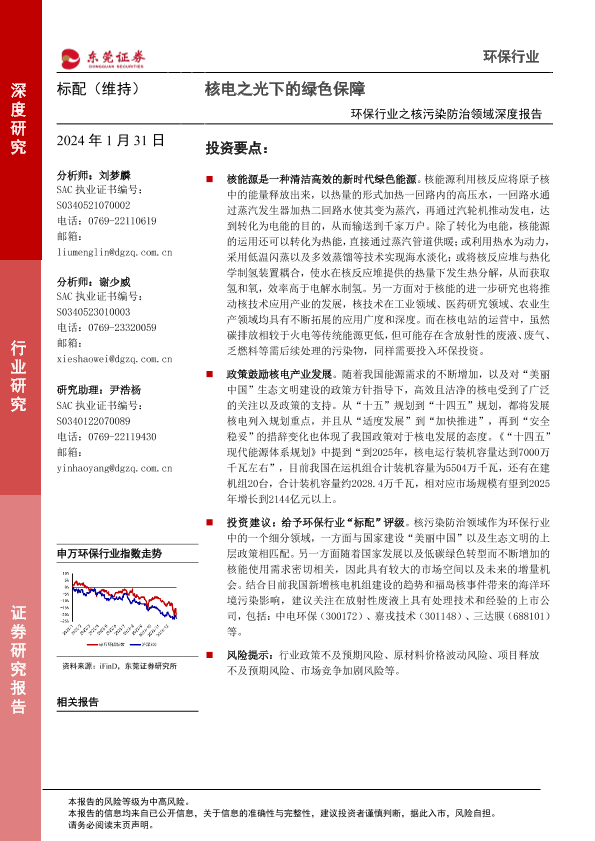 【东莞证券】【20240201】环保行业之核污染防治领域深度报告-核电之光下的绿色保障-20页