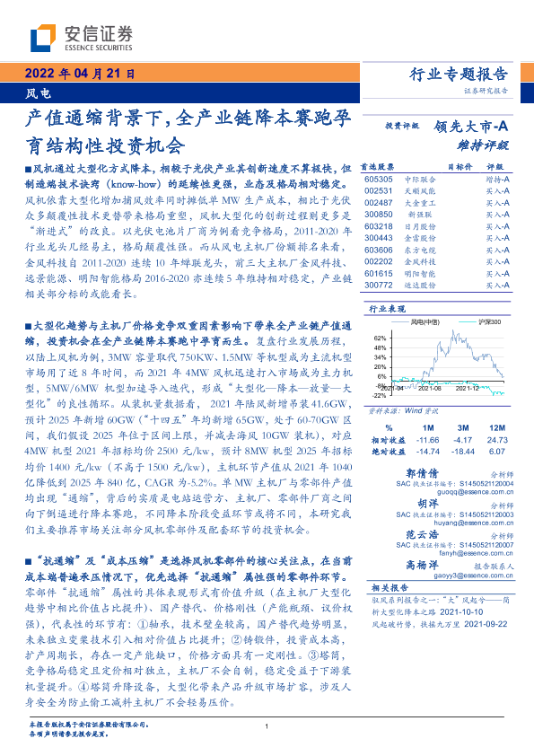 【安信证券】【20220421】风电行业专题报告:产值通缩背景下,全产业链降本赛跑孕育结构性投资机会-52页