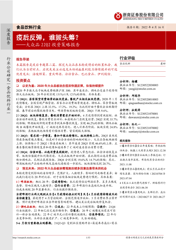 【浙商证券】【20220416】食品饮料行业大众品22Q2投资策略报告:疫情之后,谁拔头筹?-53页