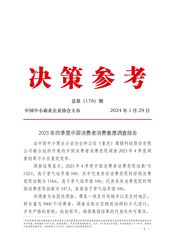 【中国中小商业企业协会】【20240205】2023年四季度中国消费者消费意愿调查报告-25页