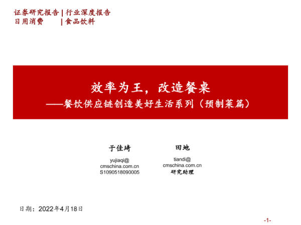 【海通证券】【20220418】食品饮料行业餐饮供应链创造美好生活系列(预制菜篇):效率为王,改造餐桌-79页