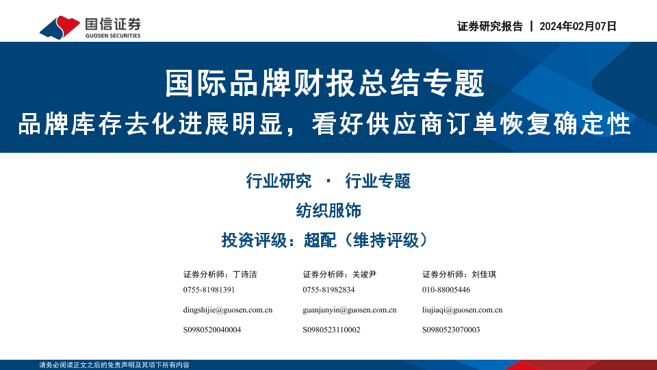 【国信证券】【20240208】国际品牌财报总结专题-品牌库存去化进展明显-看好供应商订单恢复确定性-27页