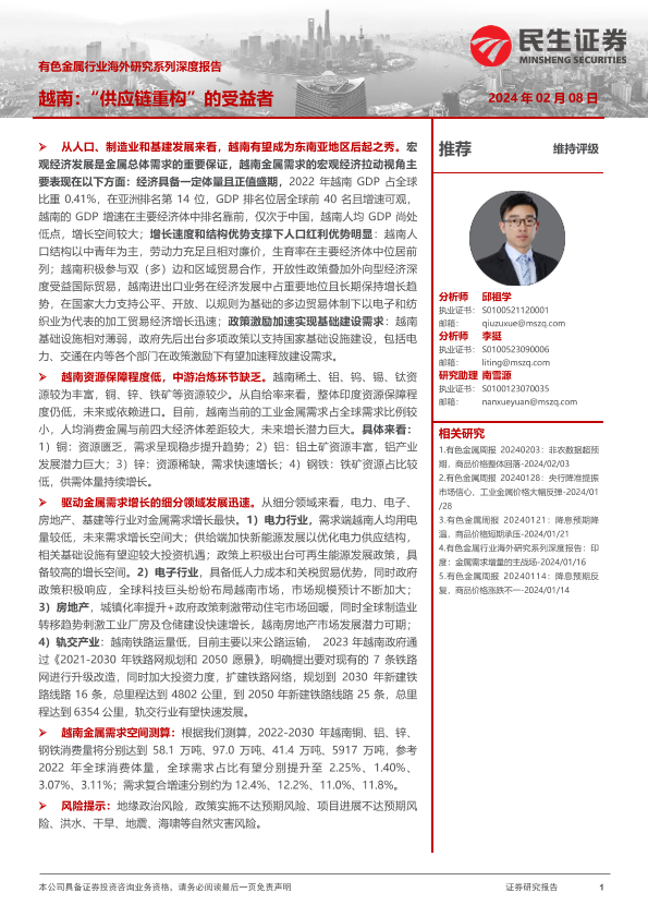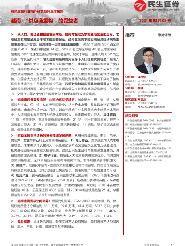 【民生证券】【20240208】2024-02-09-有色金属行业海外研究系列深度报告-越南-“供应链重构”的受益者-59页