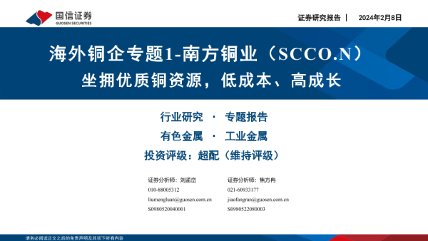 【国信证券】【20240215】海外铜企专题1-南方铜业(SCCO.N)-坐拥优质铜资源-低成本、高成长-29页