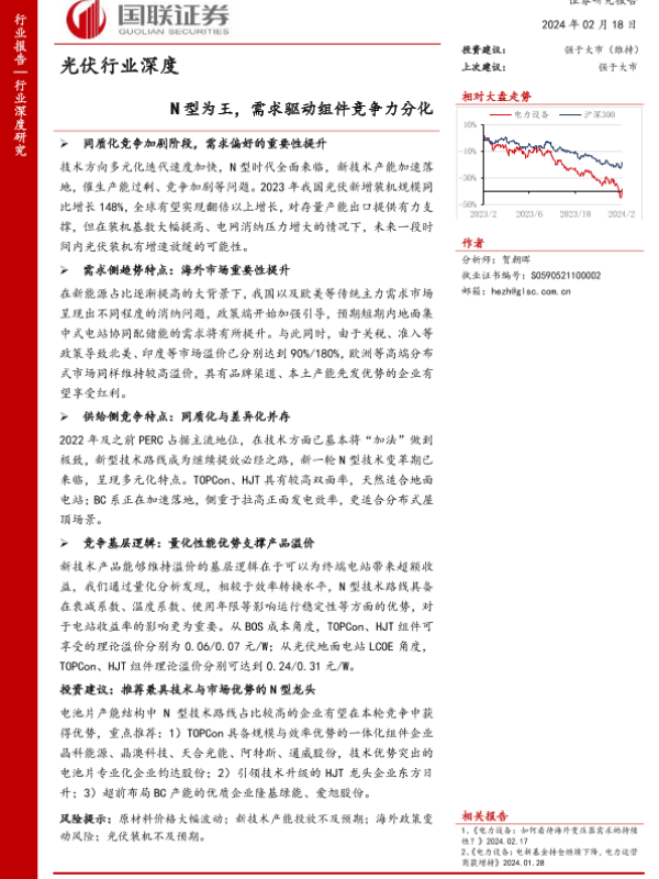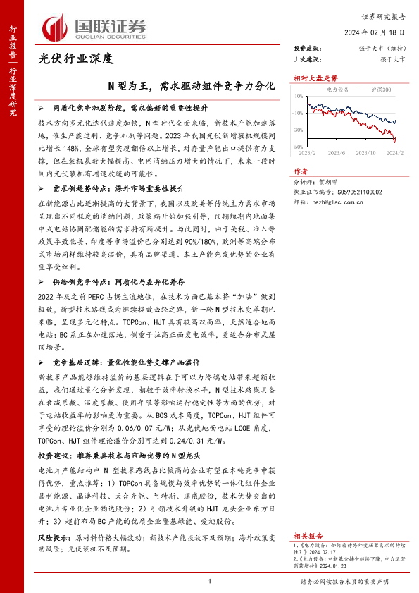 【国联证券】【20240218】光伏行业深度:N型为王,需求驱动组件竞争力分化-36页