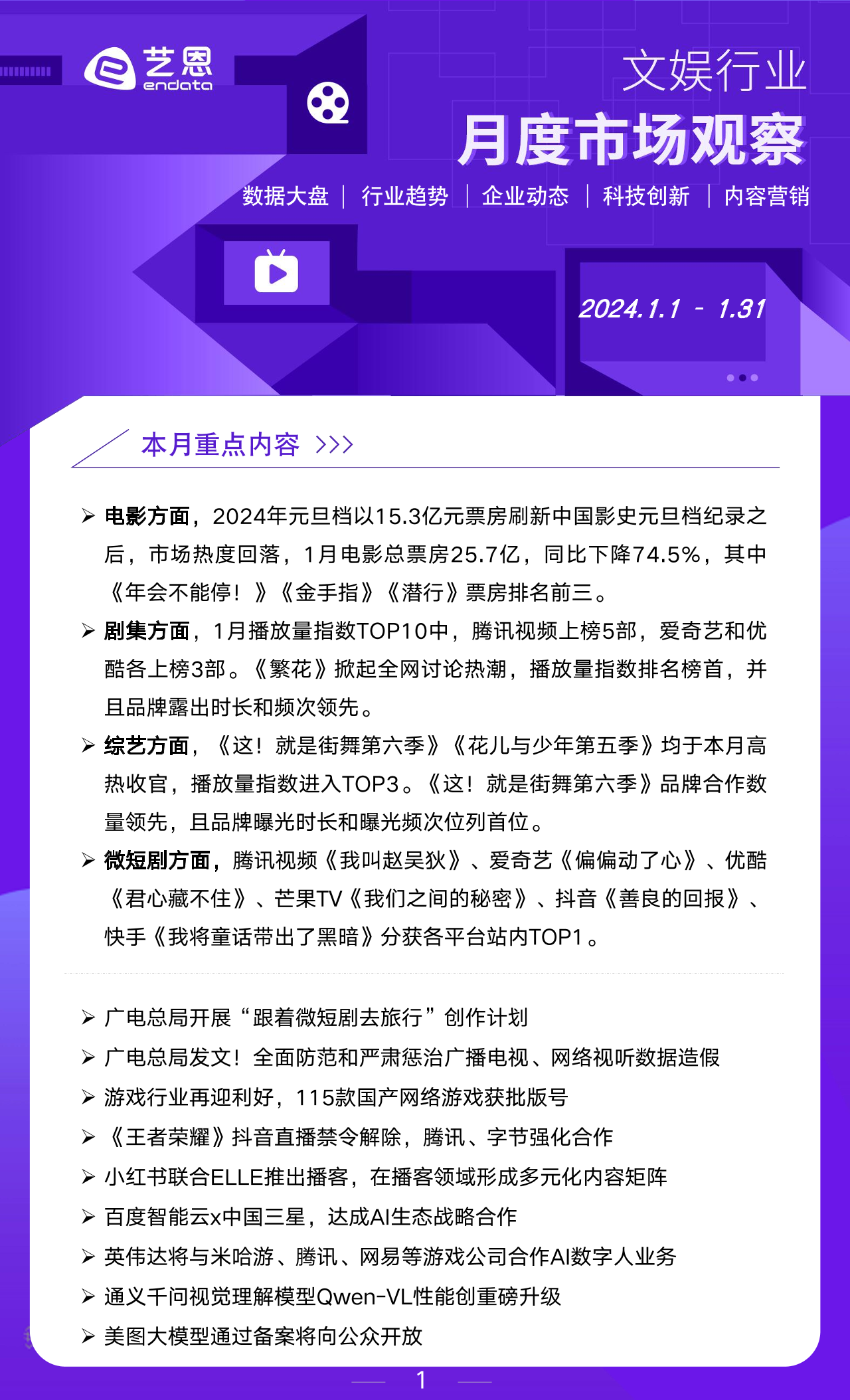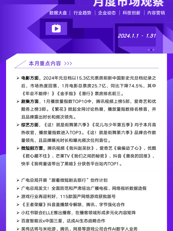 【艺恩】【202402】2024年1月文娱市场行业报告-16页