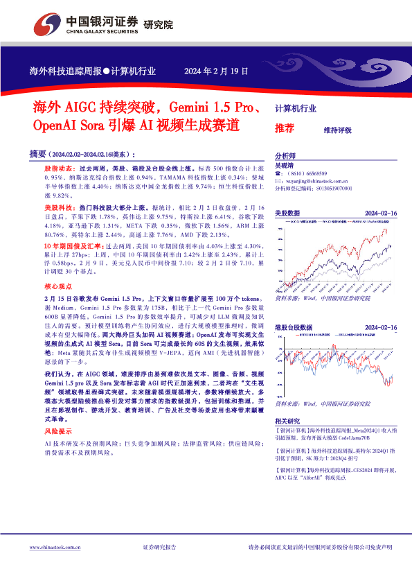 【银河证券】【20240220】海外AIGC持续突破,Gemini 1.5 Pro、OpenAI Sora引爆AI视频生成赛道-16页