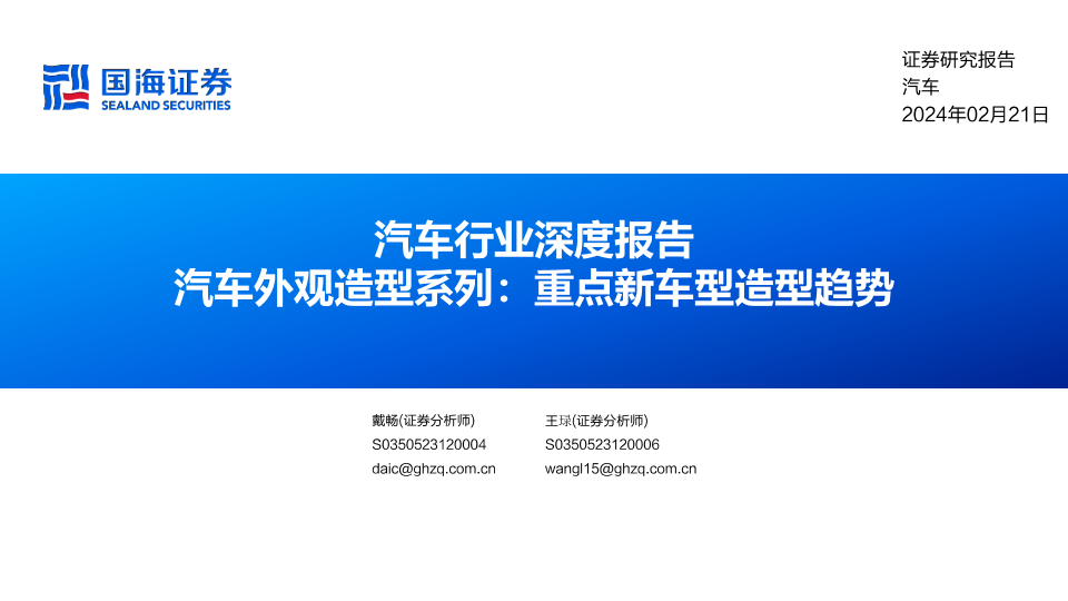 【国海证券】【20240221】汽车行业深度报告-汽车外观造型系列-重点新车型造型趋势-36页
