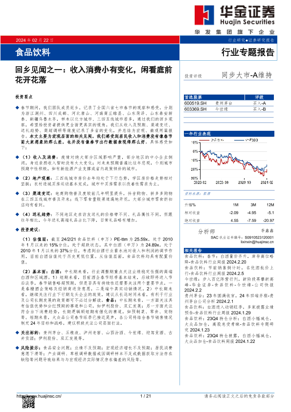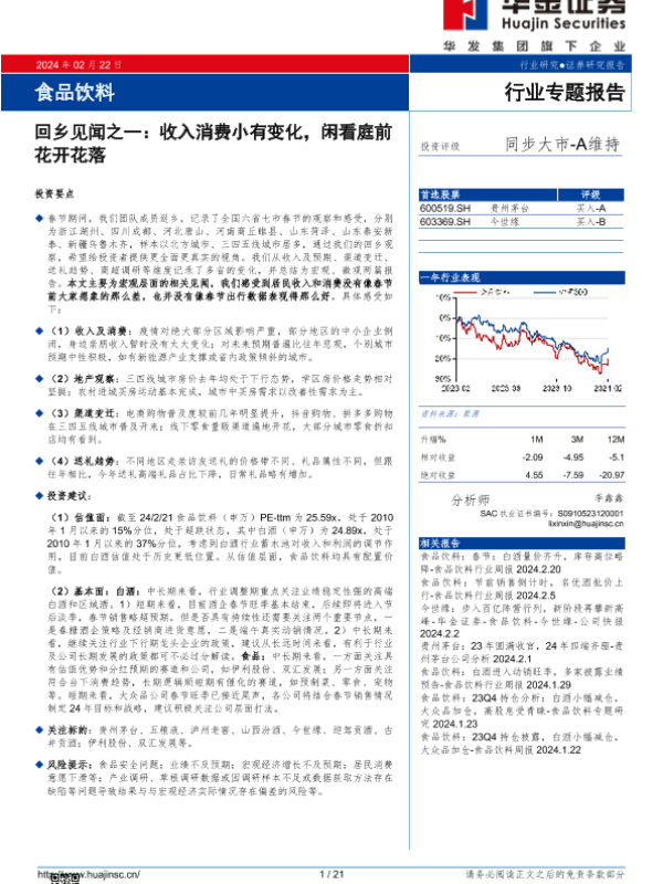 【华金证券】【20240223】食品饮料行业专题报告:回乡见闻之一——收入消费小有变化,闲看庭前花开花落-21页