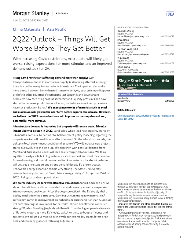 【Morgan Stanley】【20220412】中国原材料行业-2022年第二季度展望:情况在好转之前会变得更糟-40页