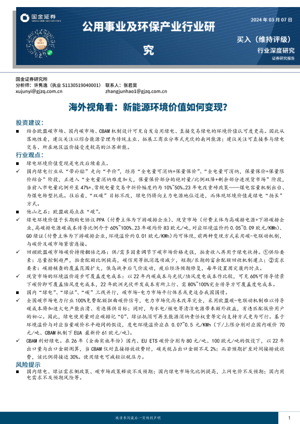 【国金证券】【20240308】公用事业及环保产业行业研究-海外视角看-新能源环境价值如何变现?-34页