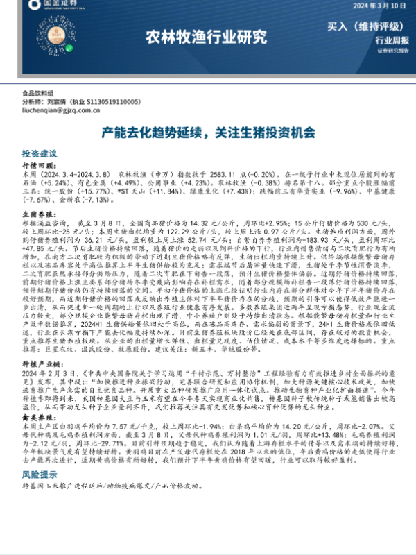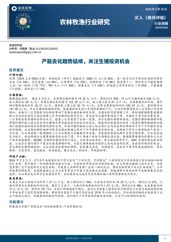【国金证券】【20240311】2024-03-11-农林牧渔行业研究-产能去化趋势延续-关注生猪投资机会-14页