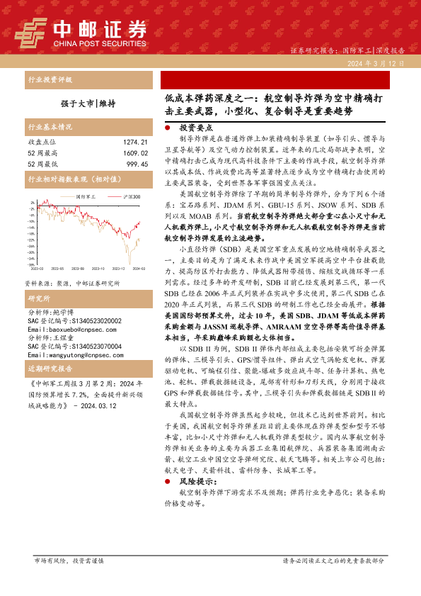 【中邮证券】【20240312】低成本弹药深度之一-航空制导炸弹为空中精确打击主要武器-小型化、复合制导是重要趋势-26页