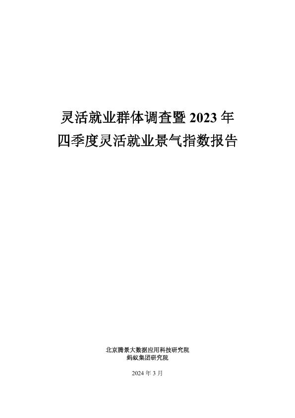 【北京腾景大数据应用科技研究院】【202403】灵活就业群体调查暨2023年四季度灵活就业景气指数报告-39页
