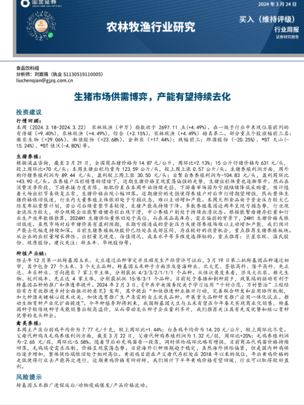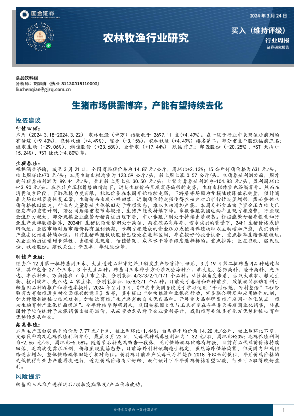 【国金证券】【20240325】2024-03-25-农林牧渔行业研究-生猪市场供需博弈-产能有望持续去化-13页