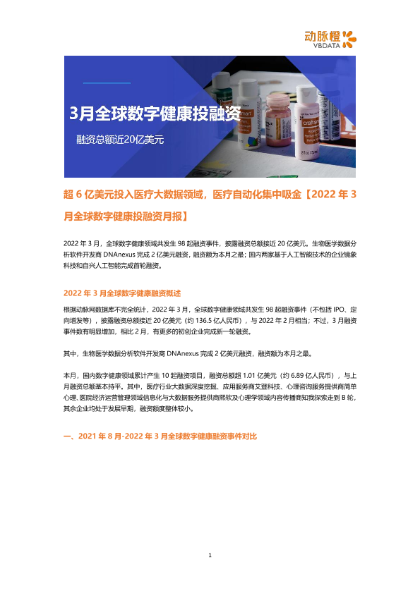 【动脉橙】【20220301】2022年3月全球数字健康投融资月报-6页