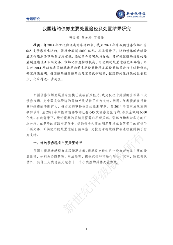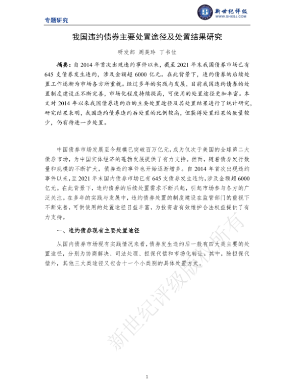 【新世纪评级】【20211231】我国违约债券主要处置途径及处置结果研究-11页