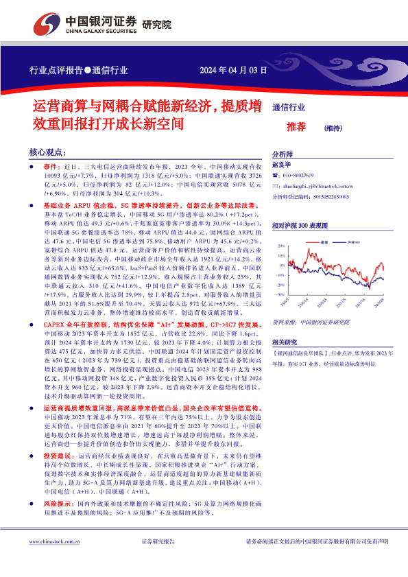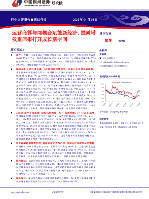 【银河证券】【20240404】运营商算与网耦合赋能新经济,提质增效重回报打开成长新空间-12页