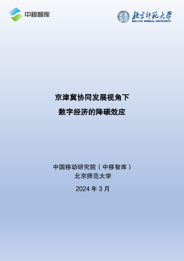 【中国移动研究院(中移智库)】【202403】京津冀协同发展视角下数字经济的降碳效应报告-53页
