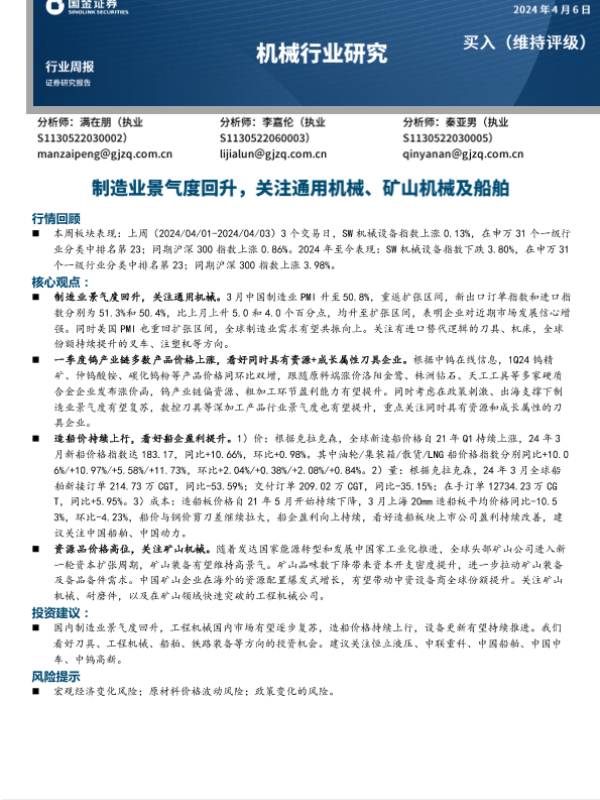 【国金证券】【20240407】2024-04-07-机械行业研究-制造业景气度回升-关注通用机械、矿山机械及船舶-16页