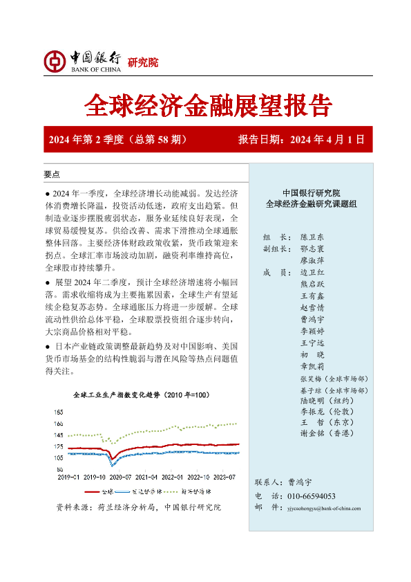 【中国银行研究院】【202404】全球经济增长动能持续承压,货币政策周期迎来拐点-中国银行全球经济金融展望报告(2024年第2季度)-61页