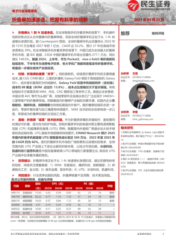 【民生证券】【20240423】2024-04-23-电子行业深度报告-折叠屏加速渗透-把握有斜率的创新-48页