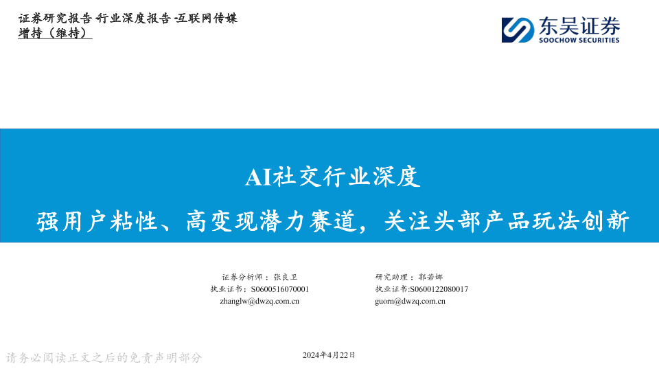 【东吴证券】【20240422】AI社交行业深度-强用户粘性、高变现潜力赛道-关注头部产品玩法创新-31页