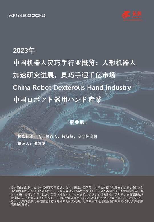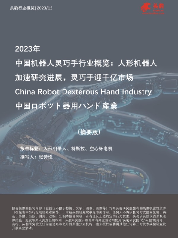 【头豹研究院】【202312】2023年中国机器人灵巧手行业概览:人形机器人加速研究进展,灵巧手迎千亿市场-11页
