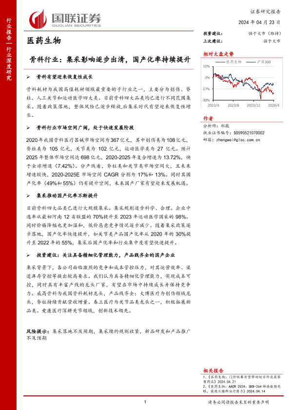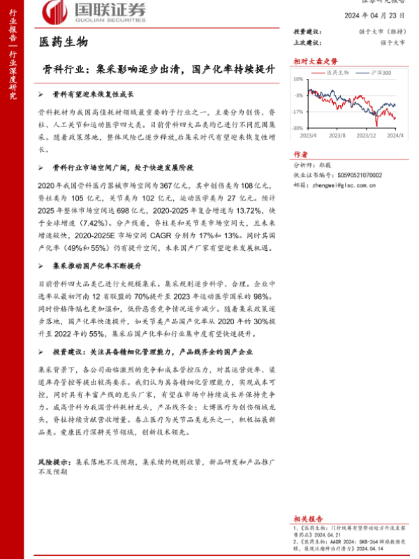 【国联证券】【20240424】骨科行业:集采影响逐步出清,国产化率持续提升-25页