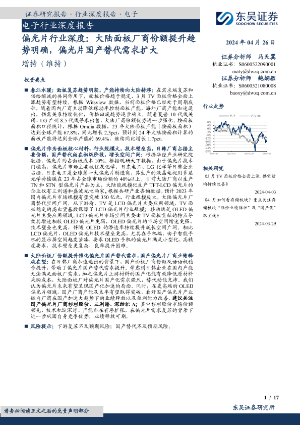 【东吴证券】【20240426】2024-04-26-偏光片行业深度-大陆面板厂商份额提升趋势明确-偏光片国产替代需求扩大-17页