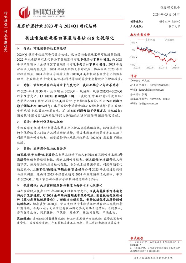【国联证券】【20240504】美容护理行业2023年与2024Q1财报总结-18页