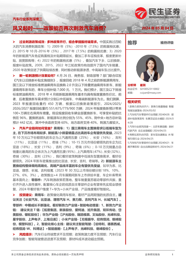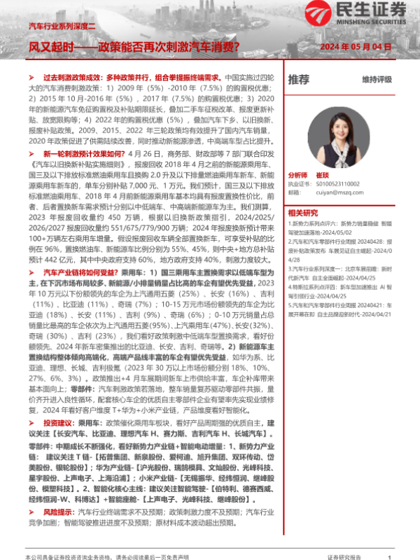 【民生证券】【20240504】汽车行业系列深度二-风又起时——政策能否再次刺激汽车消费?-47页