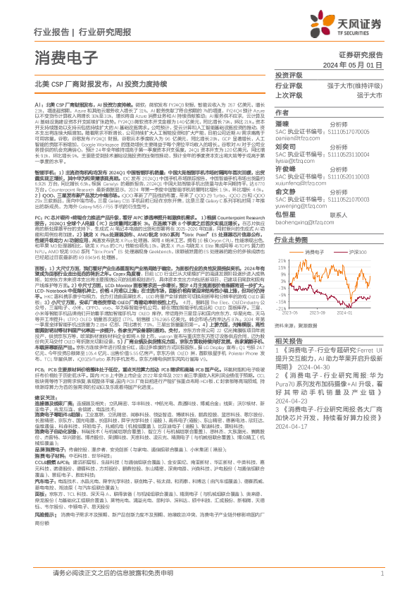 【天风证券】【20240506】2024-05-06-消费电子行业报告-北美CSP厂商财报发布-AI投资力度持续-31页
