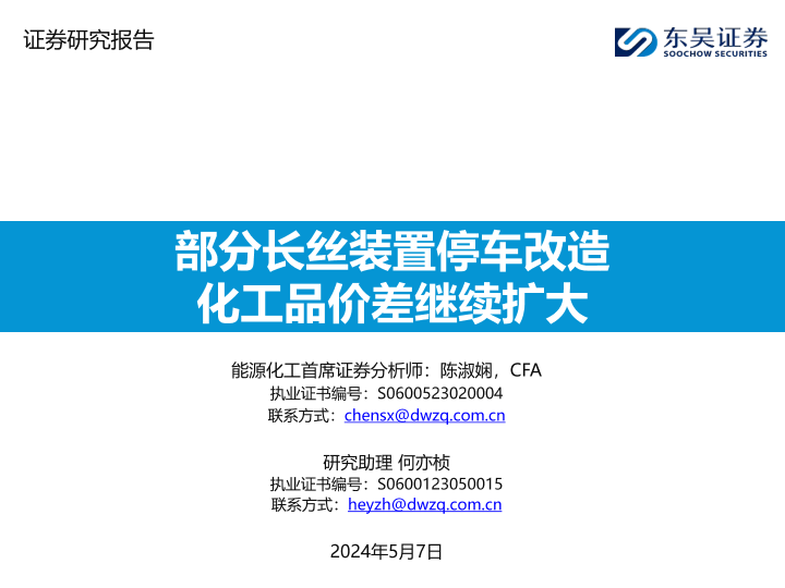 【东吴证券】【20240507】部分长丝装置停车改造化工品价差继续扩大-43页